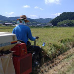 コンバインで刈り始めて早々に故障発生。アクシデントは付き物ですが、やはり人の機械ですから焦りました。でもこちらも何かの力が働いて、早くに機械屋さんが修理してくださり、午後には再び刈り取りができるようになったのです。